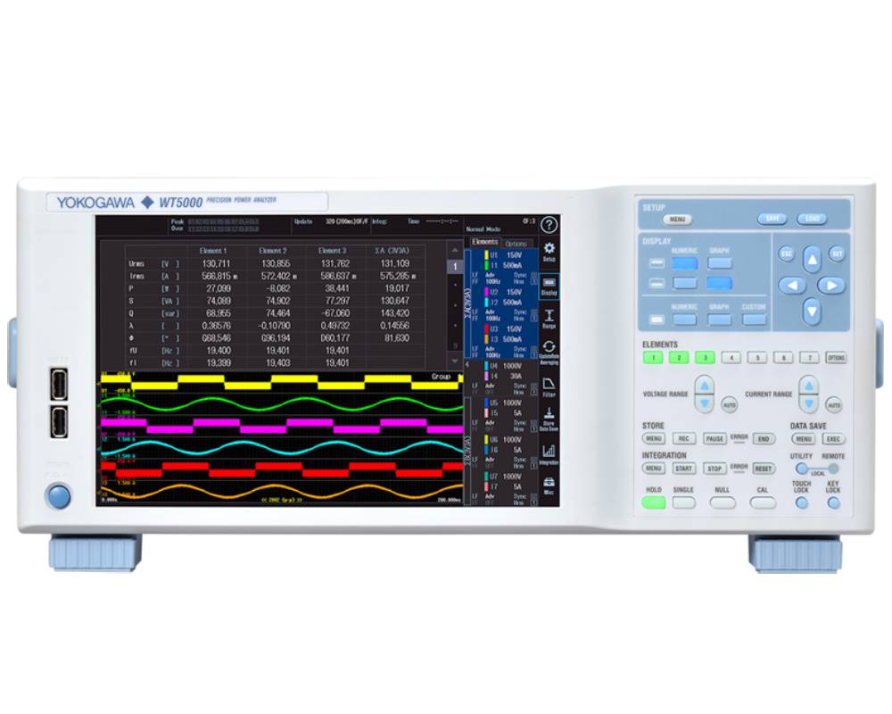 Superb accuracy has never been easier, thanks to multi-channel measurements, custom triggers and computations, advanced harmonic analysis and filtering, and user-friendly operation. The Yokogawa WT5000 precision power analyzer is a versatile platform that delivers extraordinary precision and exceptional performance for the most demanding applications. Equipped with seven user swappable and reconfigurable input elements plus four motor channels, the WT5000 high accuracy power meter is an ideal instrument for electrical and mechanical power and efficiency measurements. The Yokogawa power analyzer is now listed as an accepted device for SPEC Power testing and IEC harmonic and flicker standards. Its out-of-the-box software solution, highly responsive touchscreen, and intuitive menu operations for simple connection, configuring, and use make the WT5000 an ideal instrument for your testing needs..