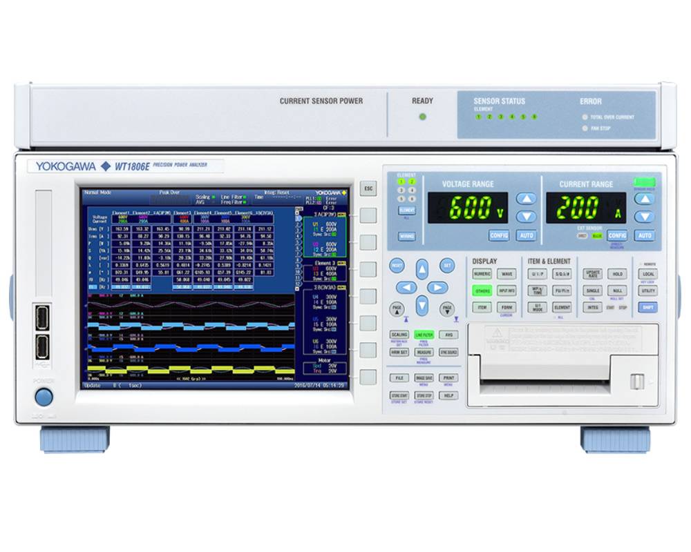 The WT1800E is a high-performance power analyzer that guarantees power accuracy of 0.05% of reading plus 0.05% of range. It is capable of harmonics analysis up to the 500th order of a 50/60 Hz fundamental frequency. With up to 6 input channels, a wide range of display and analysis features, and PC connectivity, the WT1800E is the ideal tool for engineers to accurately measure power characteristics and efficiency of electrical devices.
